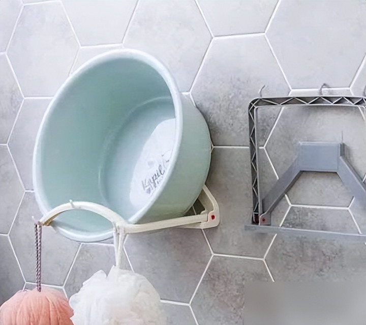 先说脸盆挂钩,我之前把洗脸盆、洗脚盆全堆在洗手台底下,每次拿盆都得蹲下来扒拉,盆底沾的灰蹭得裤子上全是,打扫的时候还得把盆子一个个搬开,清理底下的脏东西——你说费不费劲?