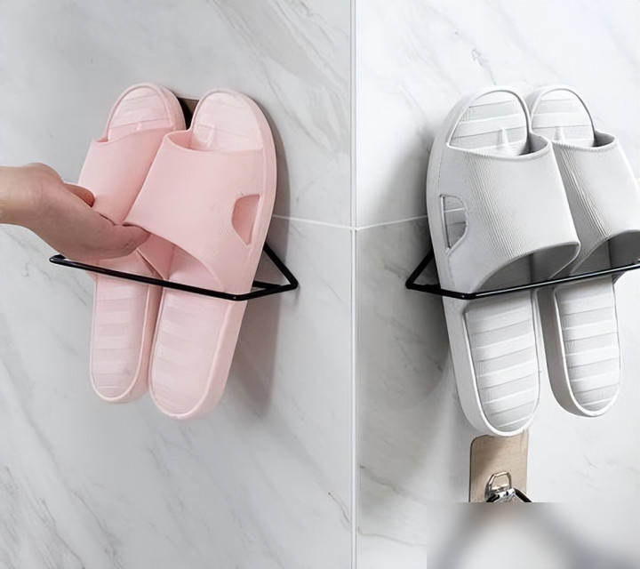 然后是拖鞋架,浴室拖鞋真的是“隐形污染源”——每天踩完洗澡水,拖鞋里全是积水,放在地上第二天还是湿的,踩上去脚底下凉嗖嗖的,还容易滑倒不说,久了鞋缝里都是黑霉点,凑近闻还有股怪味!